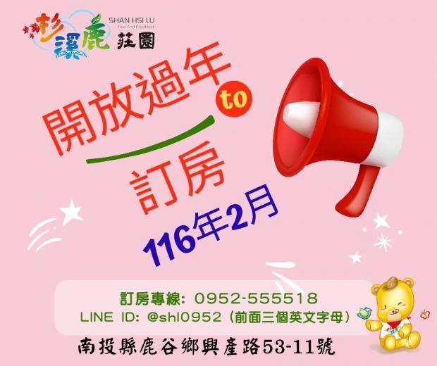 【優惠公告】116年開放過年訂房囉!
